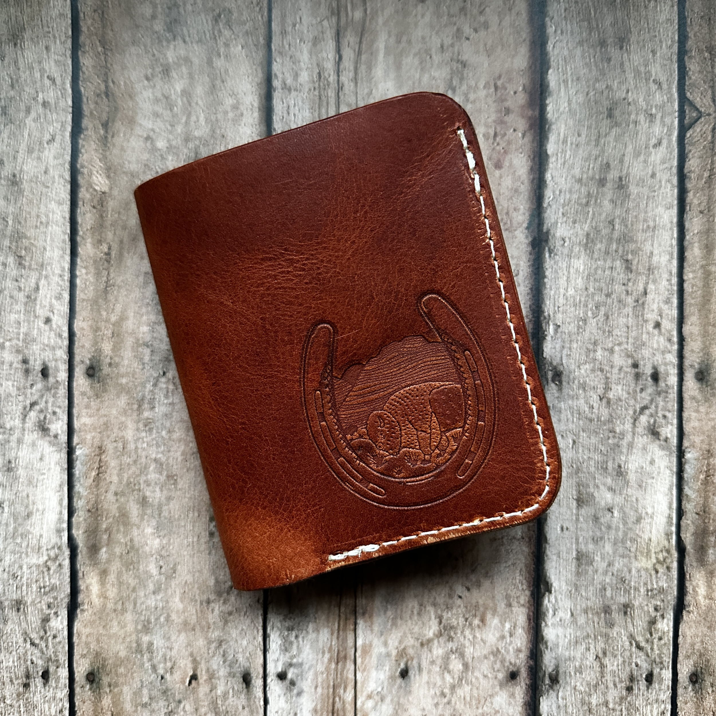 In my humble estimation, the Cassidy Wallet is the belle of this ball. Generous and capacious but not cumbersome, she’s refined, reserved, and even more pretty after you spend a little time together. For a variation of the Cassidy without the bill pocket, try the Colt. Designed by Harbinger Leather Design, illustrated with admiration and reverence for the mythological West by our friend and collaborator, Briar House Studio, and jointly built by both artists.